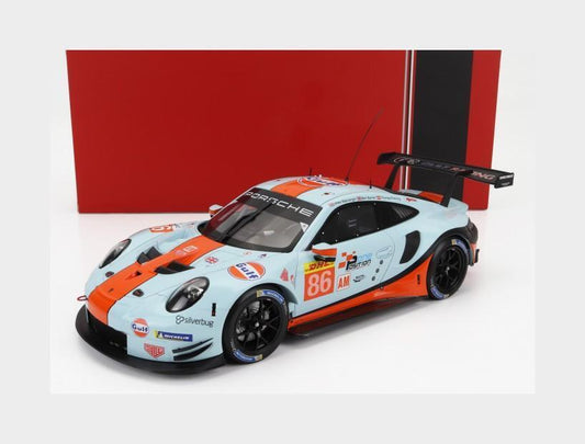 Ixo 2018 Porsche 911 991.2 GT3 RSR 4.0L Team Gulf Racing No 86 Le Mans 2018 Lt Blue/Orng/Black 1:18