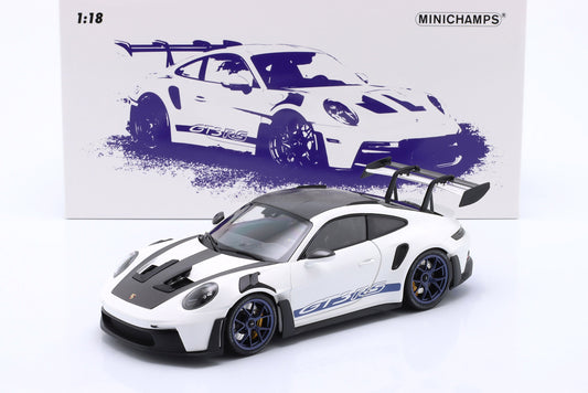 Minichamps 2022 Porsche 911 992 GT3 RS Grey Metallic w/ Weissach Package, Blue Deco & Wheels w/ Clamshell Box 1:18 LIMITED