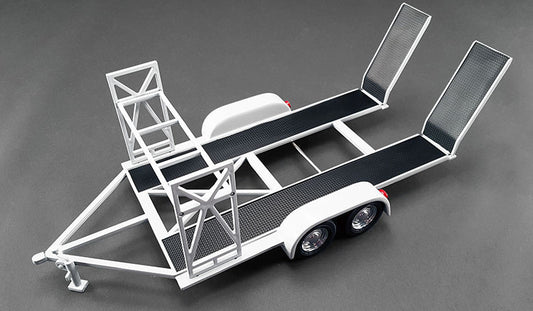 Acme Models - Accessories - Tandem Car Trailer Double Axle w/ Tire Rack White 1:18