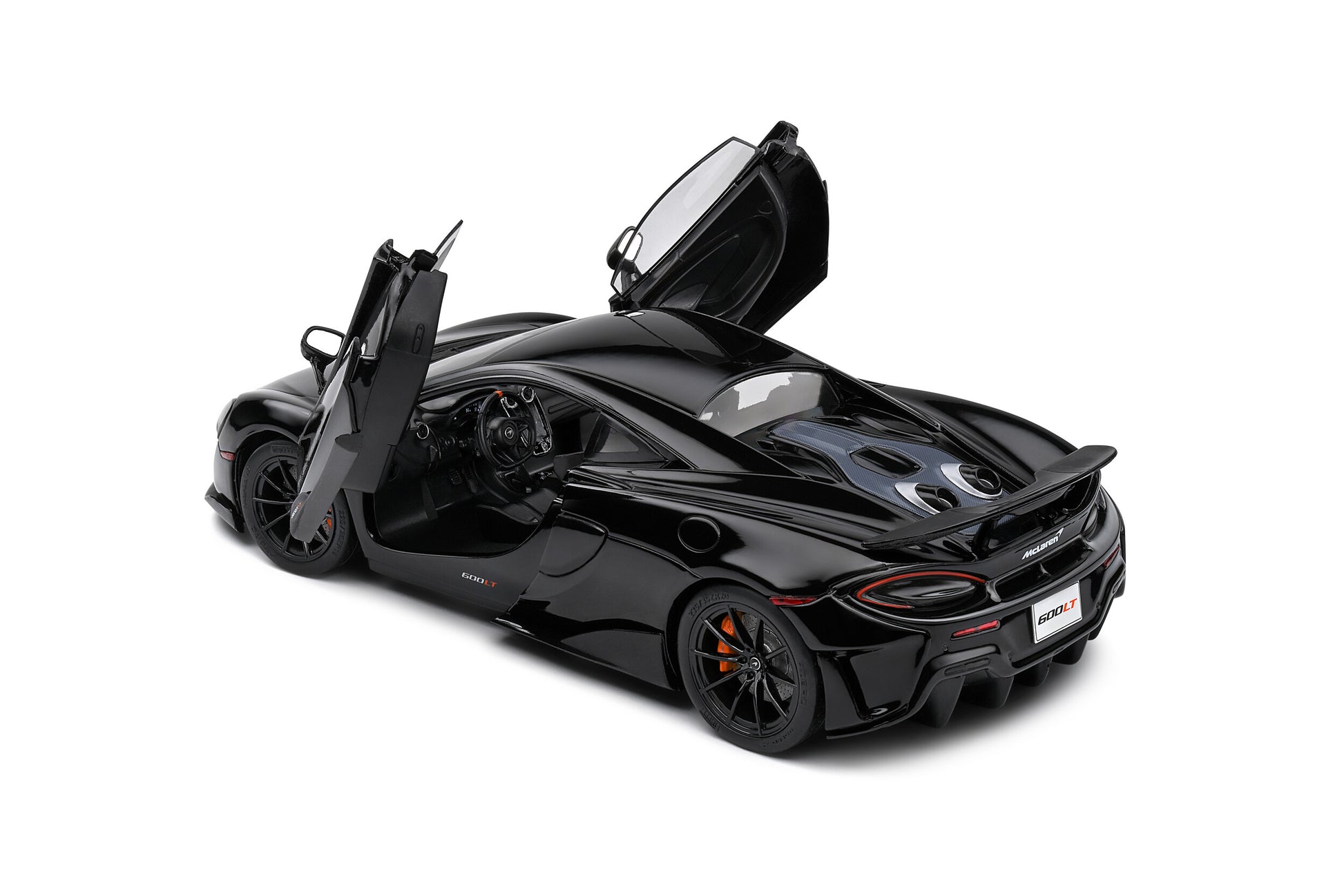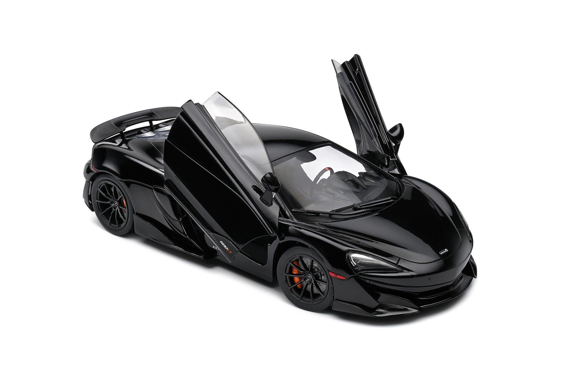 1:18 Diecast metal by Solido. 2018 Mclaren 600LT in black. Doors open.
