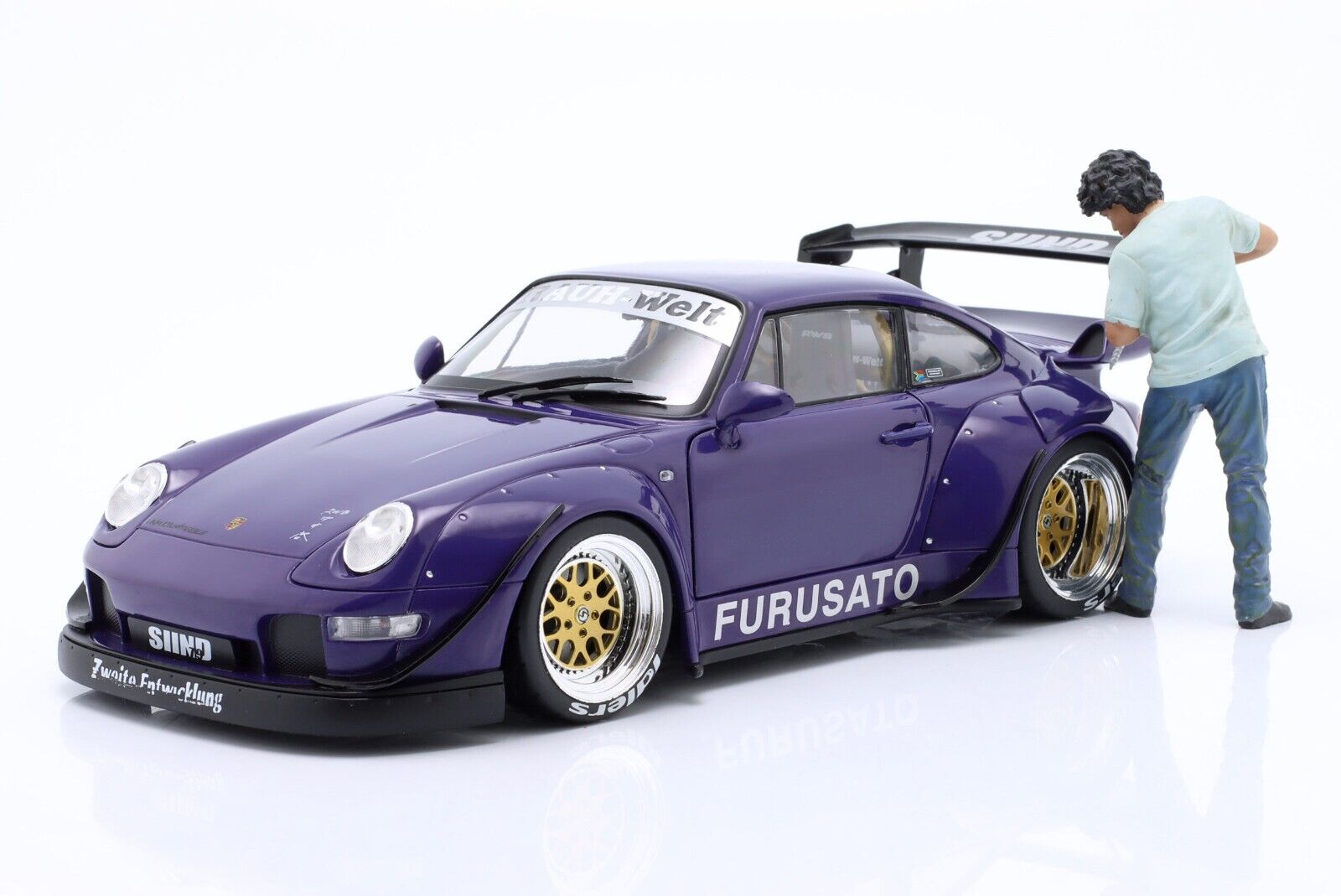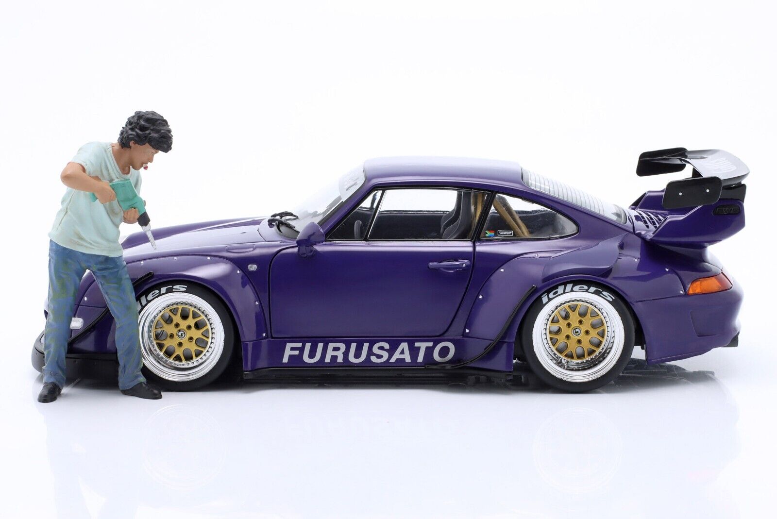 Showcasts® Figurines - RWB Legend Akira Nakai | Nakai-San Drilling Figure 3. 1:18 scale male in a blue shirt and blue jeans. Hand painted poly-resin material. This 3.5"H figure is great for decorating 1:18 scale cars and dioramas. Packed in a blister card. Card size: 5" x 8.5". 12 pcs. per inner. Note: Vehicle is not included.