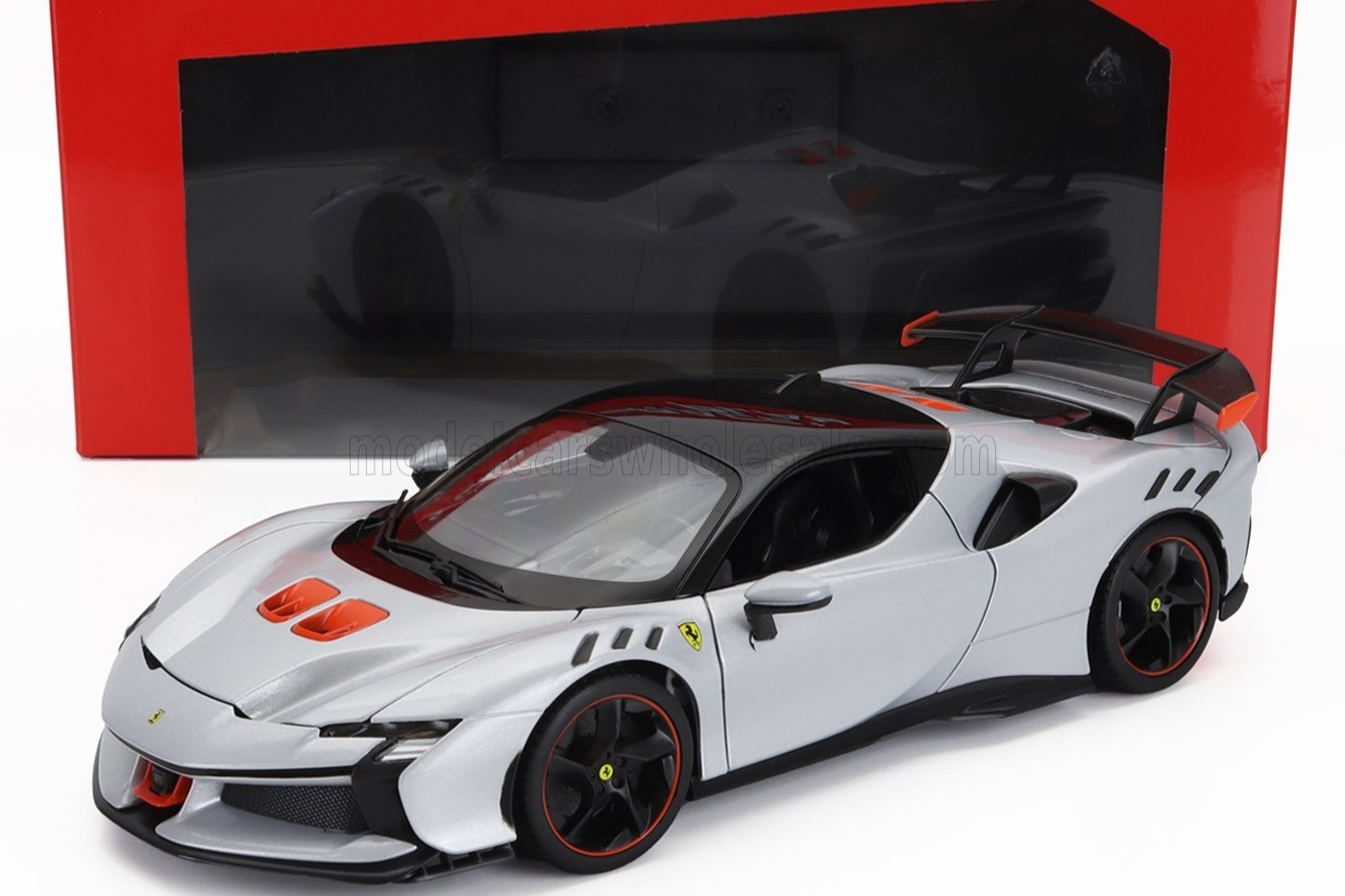 Bburago 2024 Ferrari SF90XX Stradale Arctic White (Bianco Artico) with Orange Accents 1:18