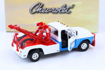 Greenlight 1969 Chevrolet C-30 Dually Wrecker Hazard County Garage White 1:18