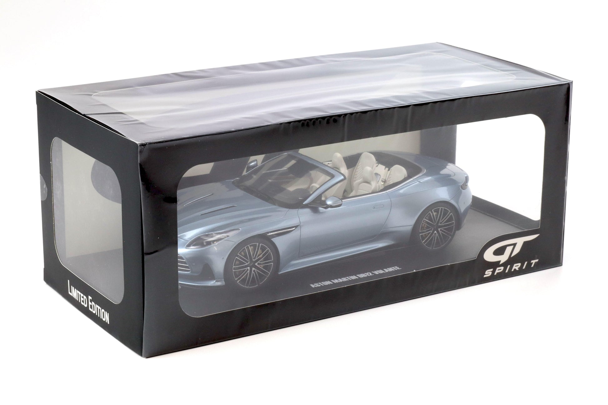 Introducing the stunning Aston Martin DB12 Volante Convertible in Light Blue Metallic by GT Spirit. This 1/18 scale model is a must-have for any car enthusiast. Crafted with precision and attention to detail, this Aston Martin is made with high-quality resin material, ensuring durability and authenticity. Get yours today and experience the thrill of owning a piece of automotive excellence.