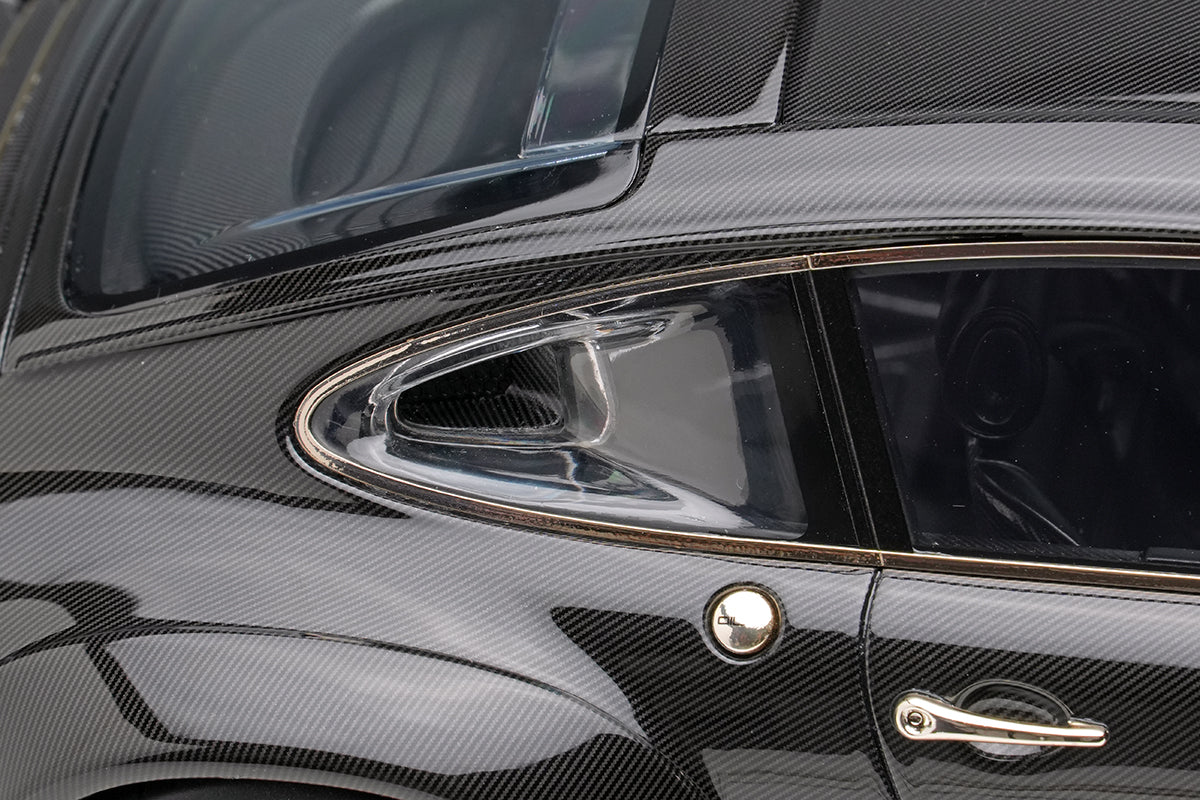 1:18 Scale hand-built resin model. Premium Make Up Co / Eidolon brand. Full exposed Carbon Fiber with Gold Wheels and Deco. Comes with a premium base and acrylic display case.