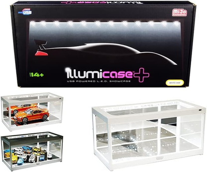 Mijo Exclusives Illumicase Plus 14 Inch White Plastic Display Case w/ LED Lighting & Mirror 1:18