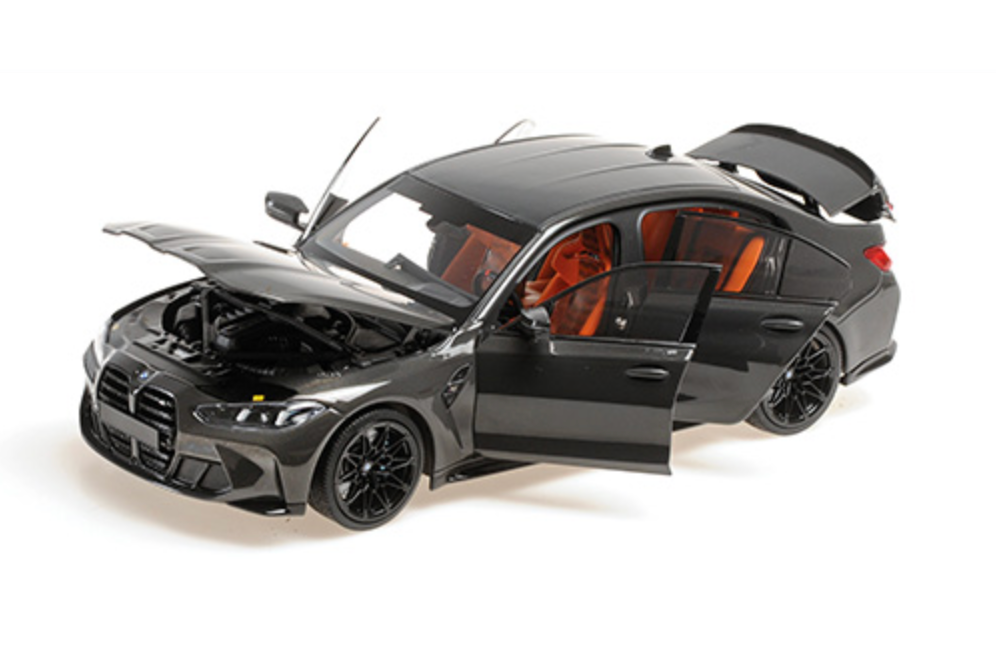 Premium Minichamps Brand. 1:18 Scale diecast 2024 BMW M3 (G80) in beautiful grey metallic! This item has FULL openings!