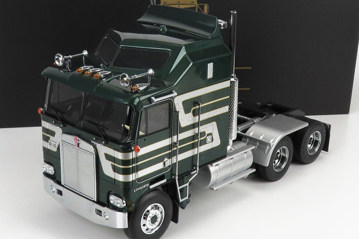 Road Kings 1976 Kenworth K100 Aerodyne Tractor Truck 3 Dark Green w/ Silver Stripes 1:18