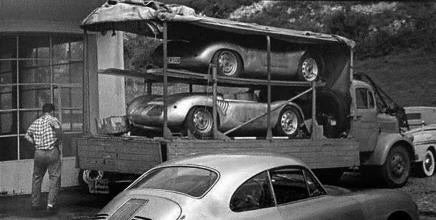 Schuco Mercedes-Benz L3500 "Porsche Renndienst" with 550 Silhouettes Dark Red 1:18