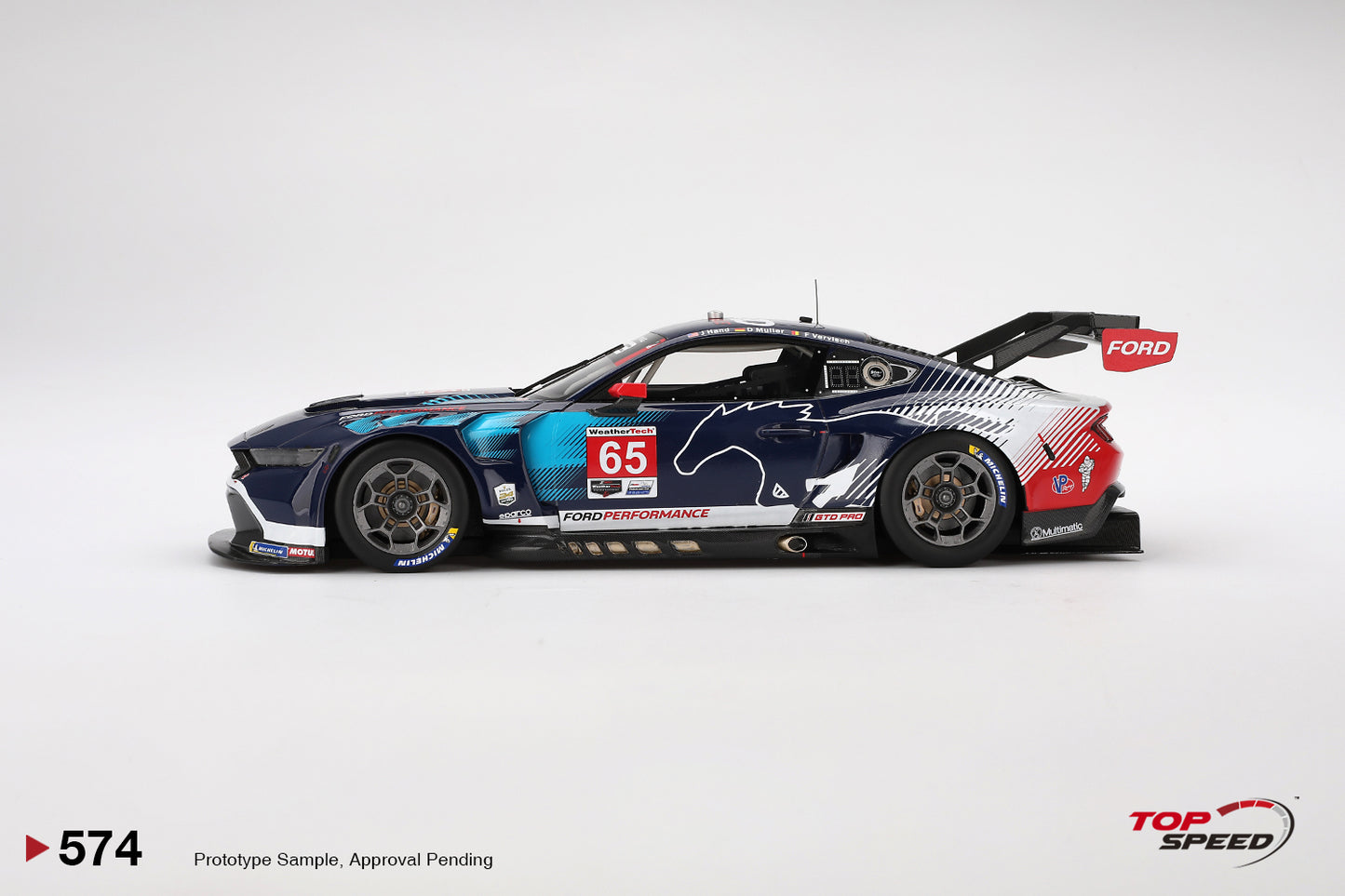 Premium Topspeed brand. 1:18 Ford Mustang GT3 #65 Ford Multimatic Motorsports 2024 IMSA Daytona 24hrs Black driven by Joey Hand, Dirk Muller, Frederic Vervisch