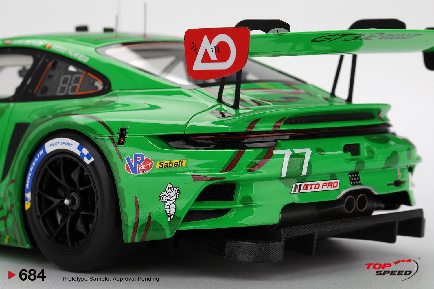 1:18 Scale by Premium Topspeed brand. Porsche 911 GT3 R #77 Rexy AO Racing 2025 IMSA Sebring 12hrs Winner in the dinosaur green livery!