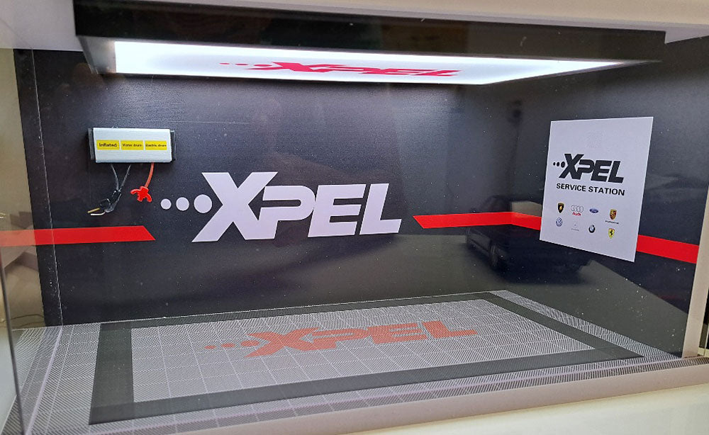 1:18 Scale Xpel workshop diorama case including plexiglass sliding windows and